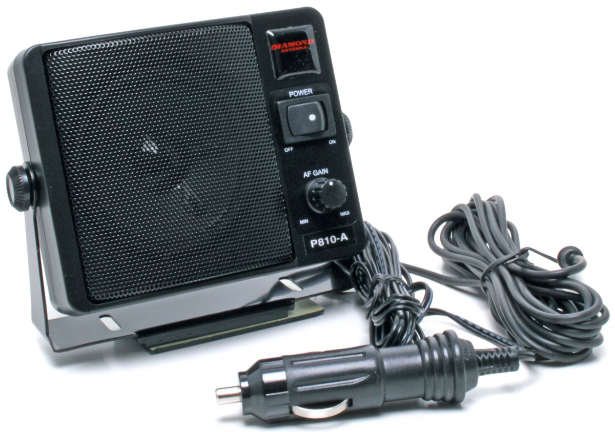 Το Diamond P-810A είναι ένα αξιόπιστο ηχείο με ρυθμιστή έντασης, εσωτερικό ενισχυτή, και καλώδιο τροφοδοσίας 2.5 μέτρα που καταλήγει σε βύσμα αναπτήρα για τροφοδοσία από το αυτοκίνητο μας. Επίσης διαθέτει 3 μέτρα καλώδιο που καταλήγει σε 3.5 mm βύσμα για χρήση σε όλους τους πομποδέκτες και αντίσταση ηχείου 8Ω με μέγιστη ένταση 6W.